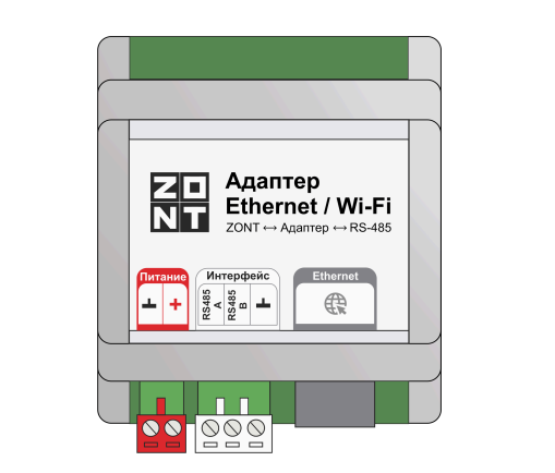 Адаптер используется только с оригинальной автоматикой ZONT. Подключение дополнительного оборудования осуществляется по интерфейсу RS-485.