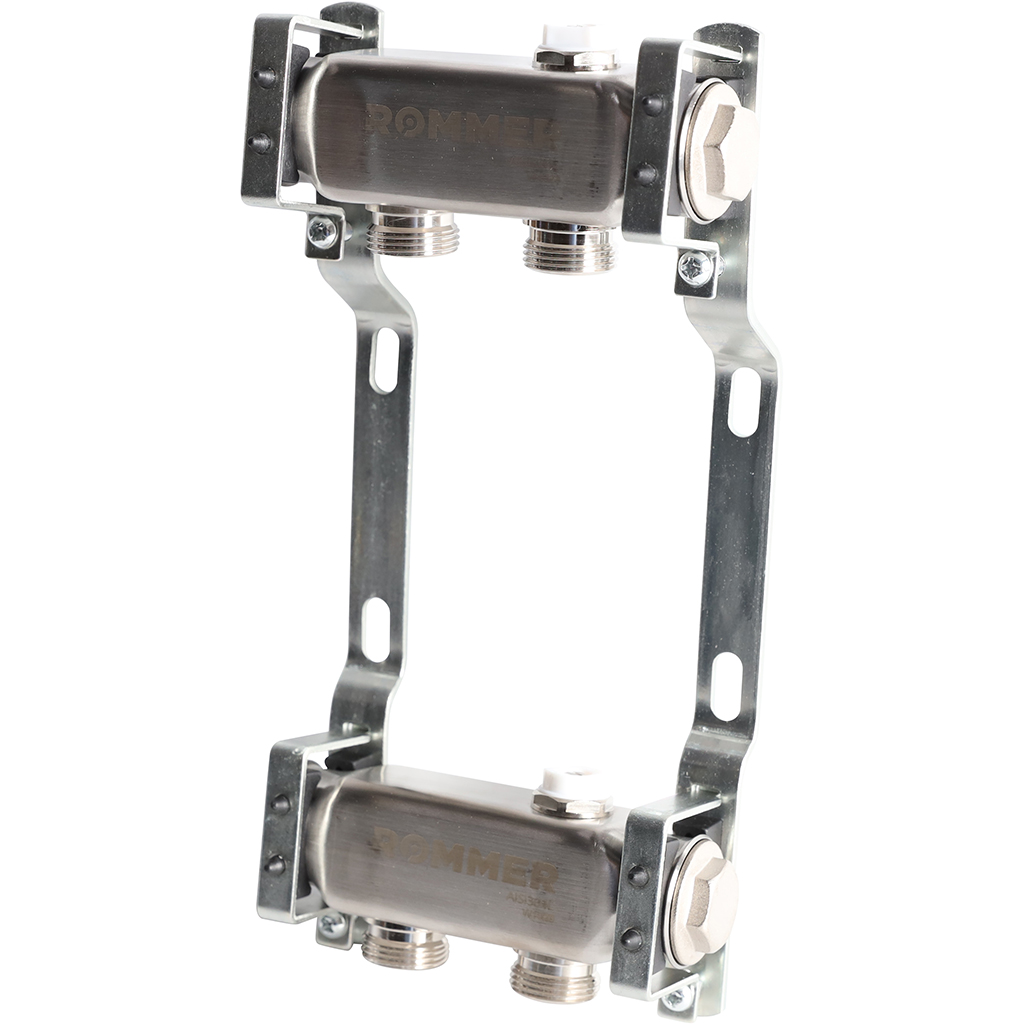 Коллектор Rommer для радиаторной разводки на 2 выхода широко применяется в лучевых (коллекторных) схемах для подключения отопительных приборов. Производство коллекторных блоков осуществляется из высококачественных материалов, с применением тщательного контроля, многочисленных тестов и сертификации продукции.