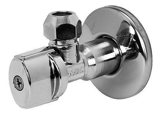 корпус - Хромированная латунь, рукоятка - Ручка, Резьба Н/обжим 1/2” х 3/8”, номинальное давление 16 бар, раб.t до 90°С для Вода