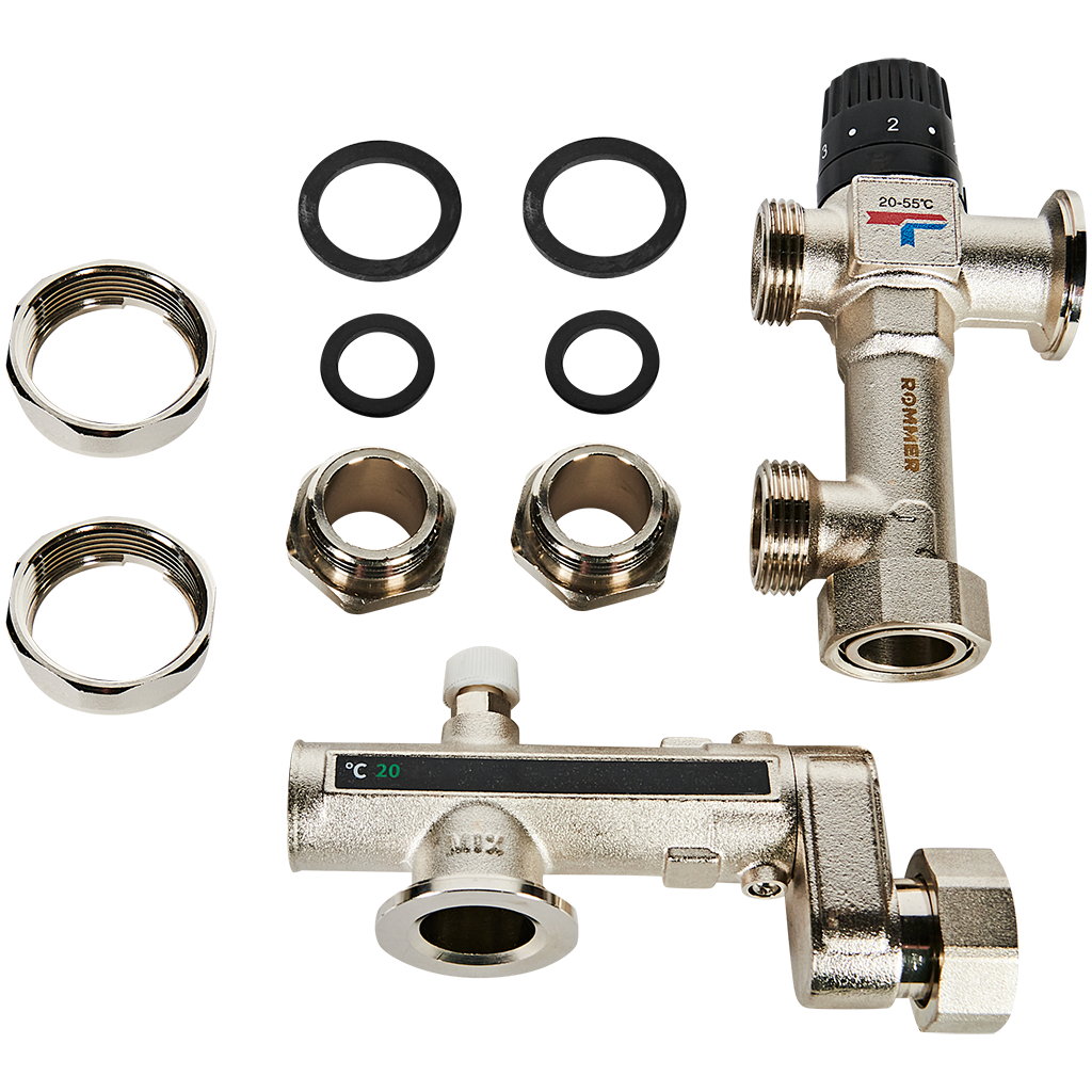 Насосно-смесительный узел с термостатическим клапаном 20-55°C без насоса Rommer купить по привлекательной цене ✔ Насосно-смесительный узел с термостатическим клапаном 20-55°C без насоса Rommer ☛ характеристики, отзывы покупателей, фотографии и сопутствующие товары ☛ Доставка по всей России ★★★ Смесительные узлы - широкий выбор на сайте интернет-магазина «Газ и Тепло»❗