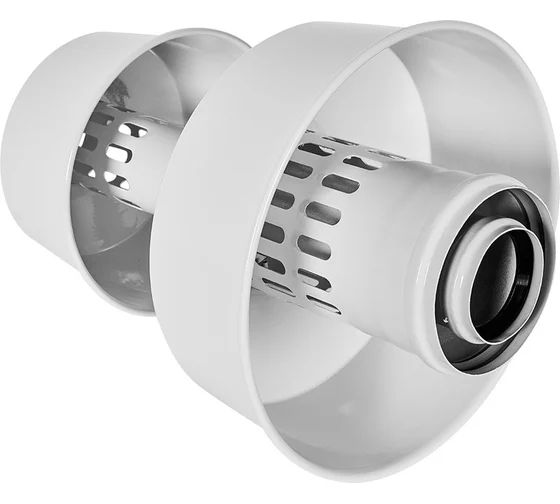 Алюминиевый оголовок предназначен для монтажа коаксиальных дымоходов традиционных котлов. Оголовок оснащён защитой от ветра и осадков. Системы дымоудаления от производителя собираются из отдельных частей и проводятся по дому с выходом через стену или крышу. Стыковка труб и фасонных элементов круглого сечения не требует инструментов и технических навыков. Комплектующие изготавливаются из алюминия (для котлов с традиционной закрытой камерой) или термостойкого полипропилена (для оборудования с конденсационным действием, в которых образуется кислотный конденсат).