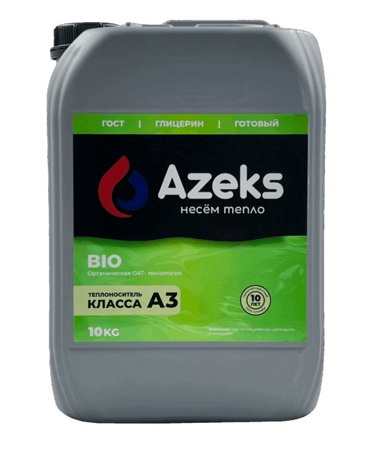 AZEKS BIO (Глицерин) теплоноситель класса А3 с увеличенным сроком эксплуатации за счёт применения технологии OAT Organic Acid Tehnology. Одобренная специалистами формула гарантирует, что ваша система отопления и комфорт будет под надёжной защитой.