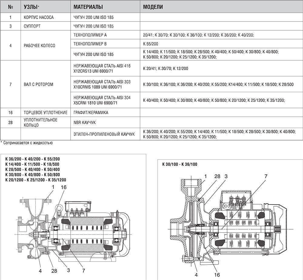 - Перекачиваемая жидкость: чистая без твердых включений и минеральных масел, не вязкая, химически нейтральная, по характеристикам аналогичная воде;