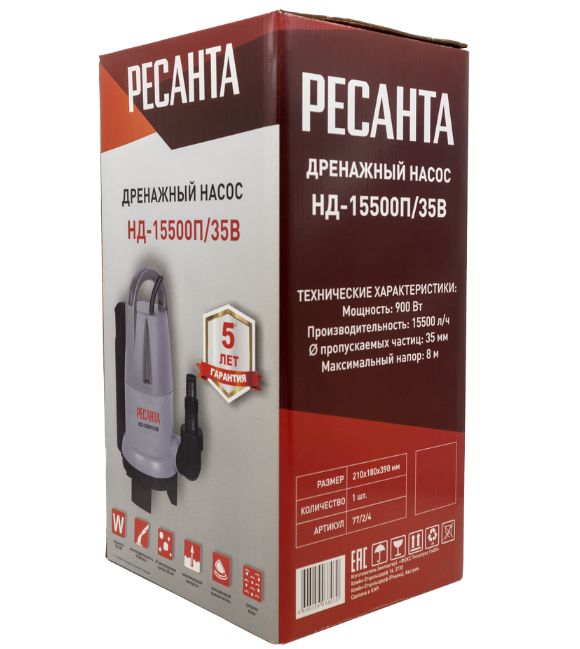 Дренажный насос Ресанта НД-15500П/35B купить по привлекательной цене ✔ Дренажный насос Ресанта НД-15500П/35B ☛ характеристики, отзывы покупателей, фотографии и сопутствующие товары ☛ Доставка по всей России ★★★ Дренажные насосы РЕСАНТА - широкий выбор на сайте интернет-магазина «Газ и Тепло»❗