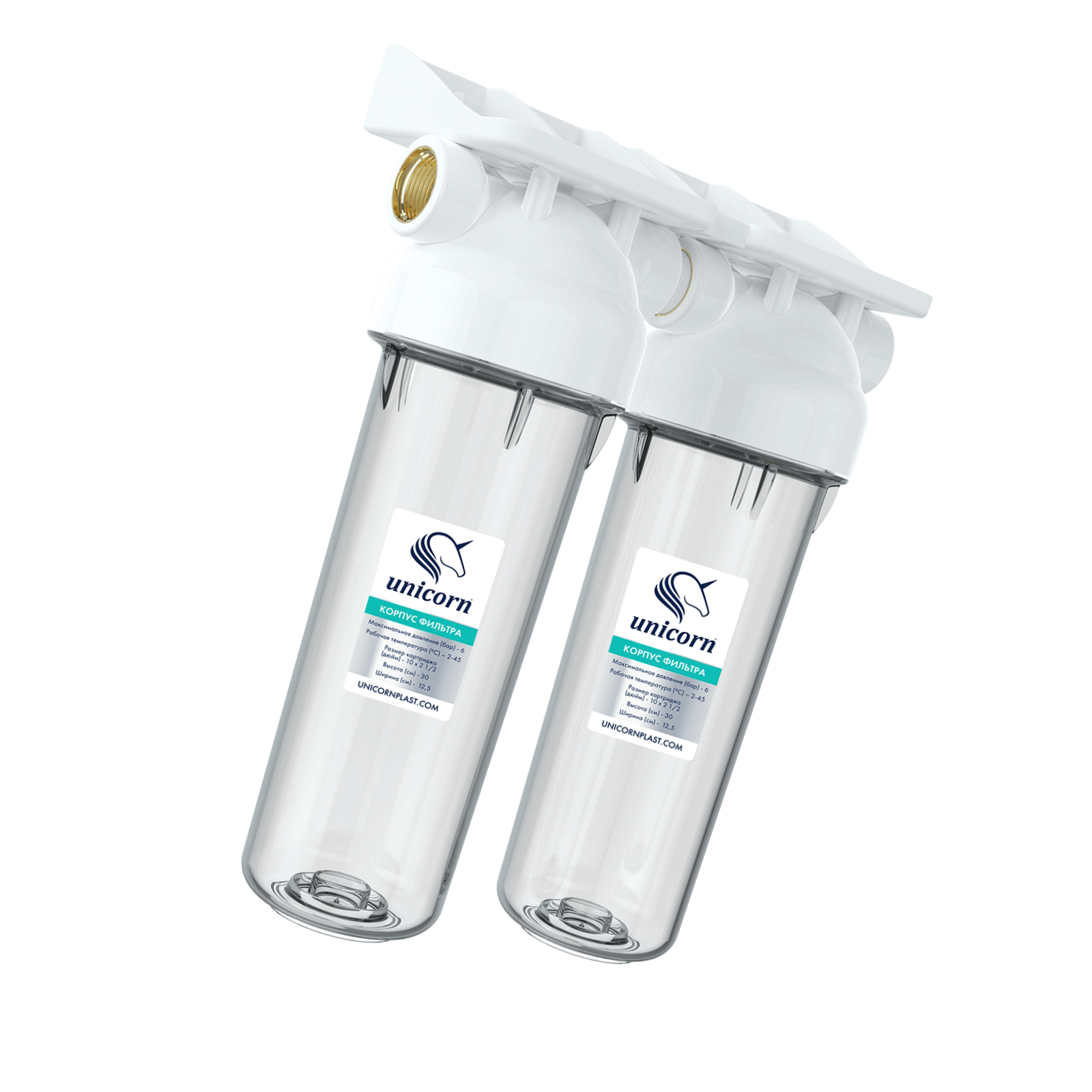 Фильтр магистральный для холодной воды 1/2” (корпус 10” двойной прозрачный) Unicorn (KSBP 1/2 DUO) купить по привлекательной цене ✔ Фильтр магистральный для холодной воды 1/2” (корпус 10” двойной прозрачный) Unicorn (KSBP 1/2 DUO) ☛ характеристики, отзывы покупателей, фотографии и сопутствующие товары ☛ Доставка по всей России ★★★ Колбы магистрального фильтра UNICORN - широкий выбор на сайте интернет-магазина «Газ и Тепло»❗