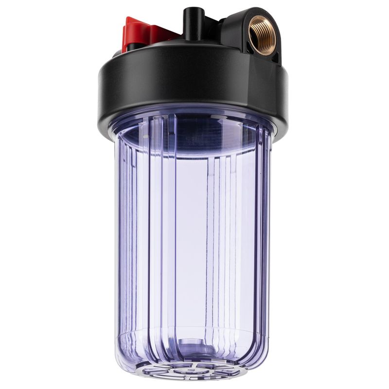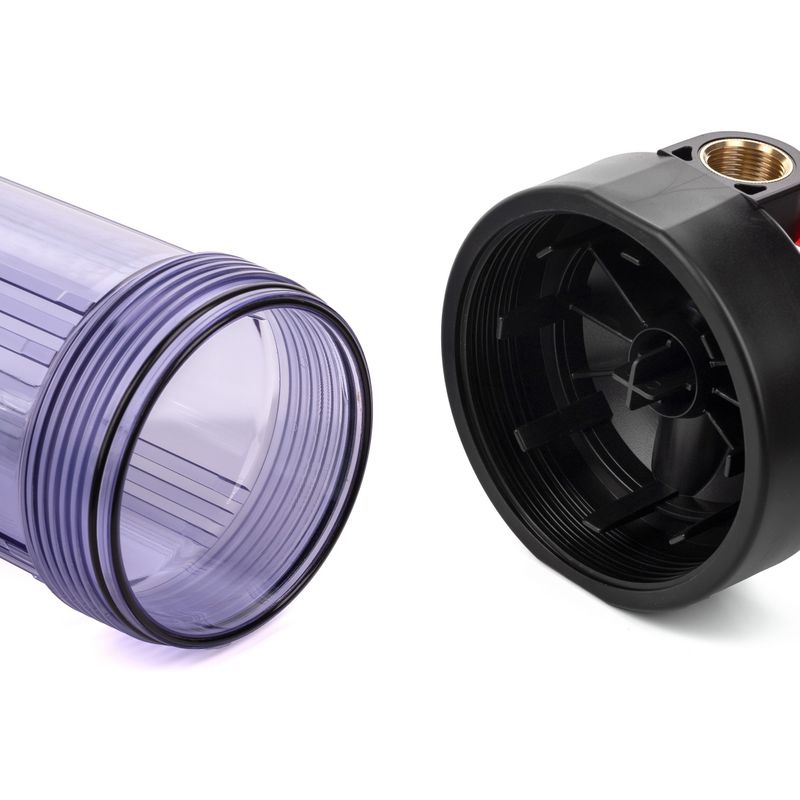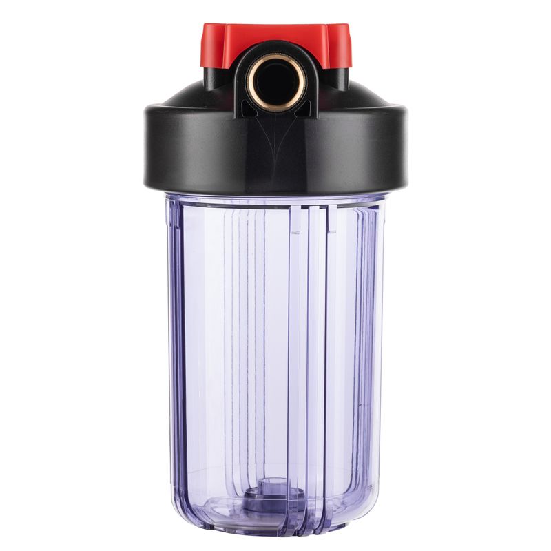 Корпус фильтра предназначен для установки в систему холодного водоснабжения частного дома или квартиры с целью предварительной механической или комплексной очистки воды от загрязнений (в зависимости от установленного картриджа). Выполнен из ударопрочного прозрачного пластика.