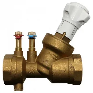Ручной балансировочный клапан с фиксированным проходом (основан на принципе Вентури). Латунный корпус с внутренней - внутренней резьбой и сливом. Рукоятка из пластика ABS с нанесенным значением KV устройства Вентури. Возможность регулировки с блокировкой установленной настройки (механическая память). Доступны в модификациях с штуцерами для измерения дифференциального давления, или без них.