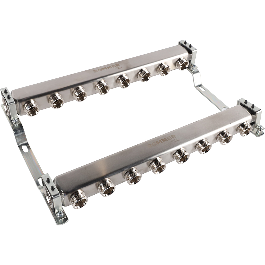 Коллектор для радиаторной разводки 8 выходов (нерж. сталь) Rommer