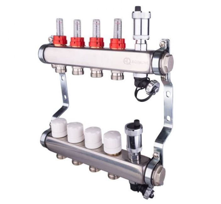 Коллекторная группа с расходомерами 4 выхода Aqualink купить по привлекательной цене ✔ Коллекторная группа с расходомерами 4 выхода Aqualink ☛ характеристики, отзывы покупателей, фотографии и сопутствующие товары ☛ Доставка по всей России ★★★ Коллекторные группы с расходомерами AQUALINK - широкий выбор на сайте интернет-магазина «Газ и Тепло»❗