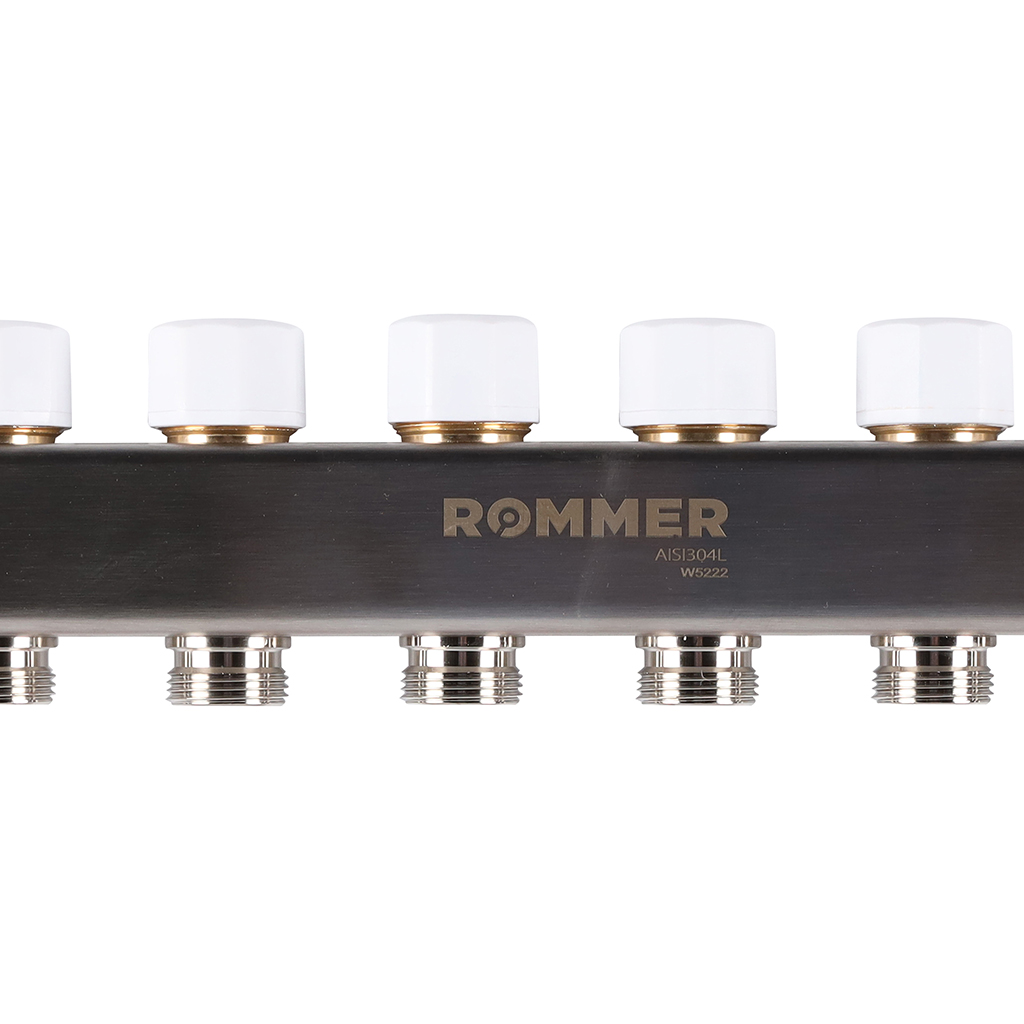 Коллектор из нержавеющей стали Rommer в сборе с расходомерами на 11 выходов широко используется в системах водяного теплого пола или для подключения отопительных приборов. Производство коллекторных блоков осуществляется из высококачественных материалов, с применением тщательного контроля, многочисленных тестов и сертификации продукции.