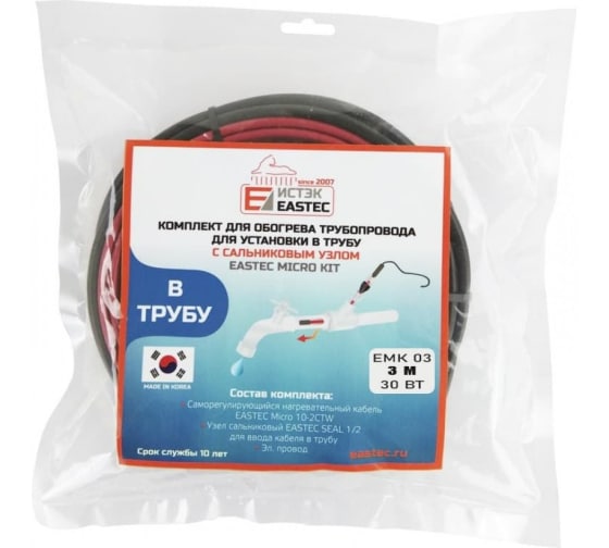 Комплект для обогрева трубопровода ЕМК-08 Eastec для установки в трубу (8м, 80Вт) купить по привлекательной цене ✔ Комплект для обогрева трубопровода ЕМК-08 Eastec для установки в трубу (8м, 80Вт) ☛ характеристики, отзывы покупателей, фотографии и сопутствующие товары ☛ Доставка по всей России ★★★ Комплекты греющего кабеля EASTEC - широкий выбор на сайте интернет-магазина «Газ и Тепло»❗