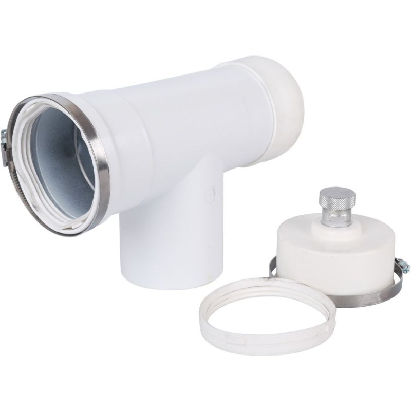Позволяет собирать конденсат, который образуется в трубе отвода продуктов сгорания, предотвращает попадание конденсата в котел. Соединяет горизонтальный и вертикальный участки.