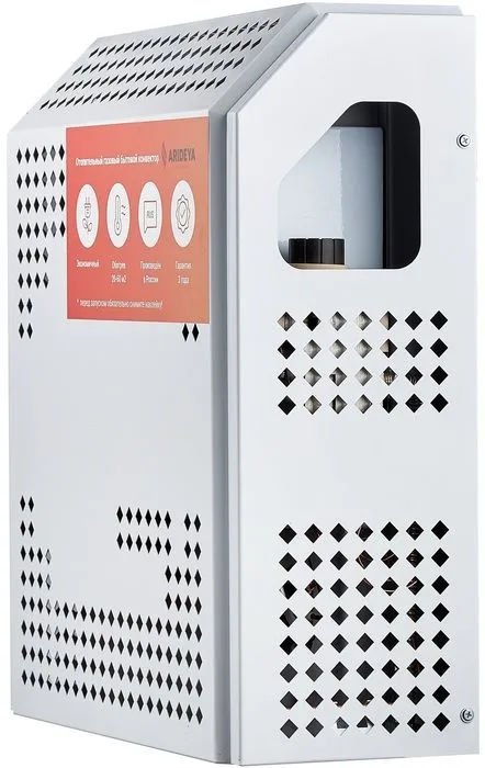 Конвектор ARIDEYA осуществляет обогрев, работая на природном газе. Оборудован дымоходом коаксиального типа, который выводит продукты сгорания и обеспечивает подачу свежего воздуха. Выводится он на внешнюю стену.