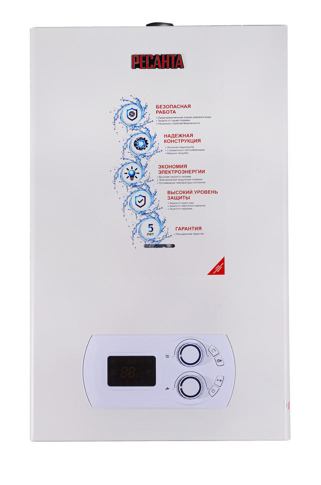 Газовый настенный двухконтурный котёл ГК-11 Ресанта предназначен для нагрева воды в системе отопления и приготовления горячей технической воды системы водоснабжения.