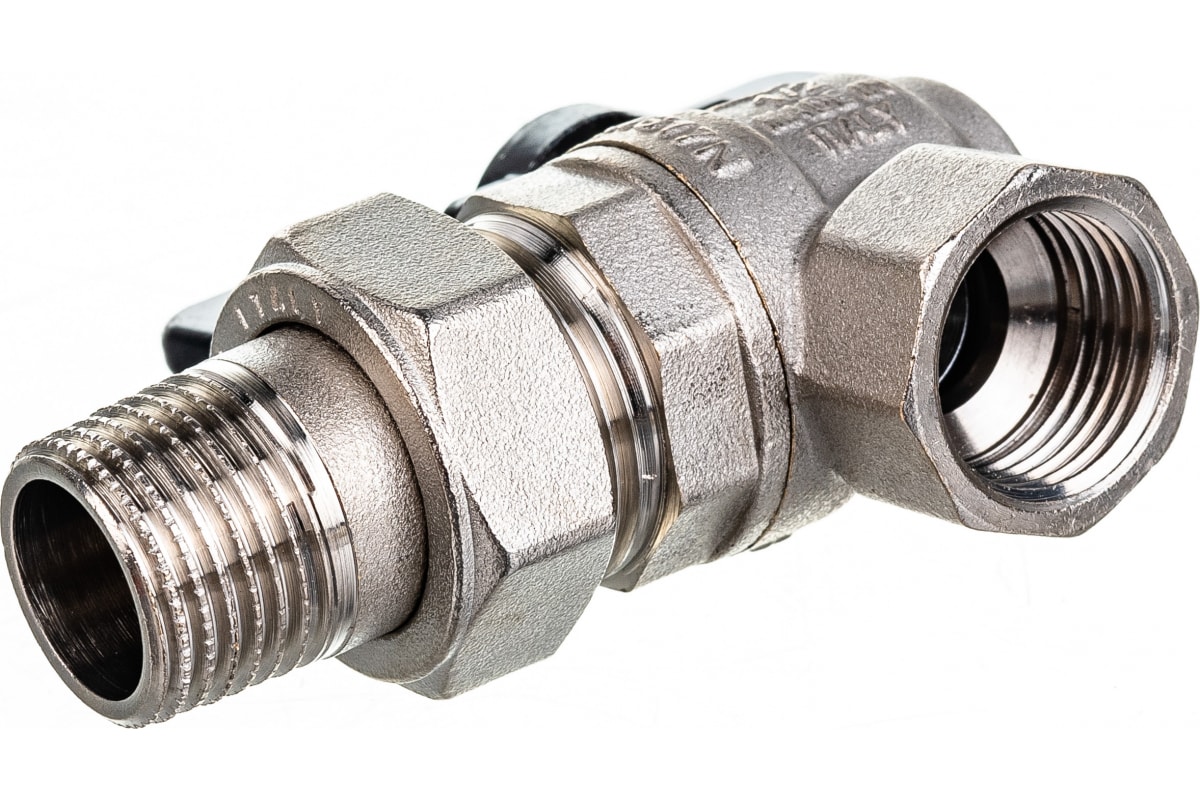 корпус - Никелированная латунь, рукоятка - Бабочка, Резьба Разборное В/Н 3/4”, номинальное давление 50 бар, раб.t от -20 до 150°С для Вода, жидкие среды неагрессивные к материалам изделия