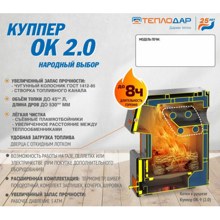 Напольный твердотопливный котел КУППЕР ОК-30 купить по привлекательной цене ✔ Напольный твердотопливный котел КУППЕР ОК-30 ☛ характеристики, отзывы покупателей, фотографии и сопутствующие товары ☛ Доставка по всей России ★★★ Твердотопливные котлы ТЕПЛОДАР - широкий выбор на сайте интернет-магазина «Газ и Тепло»❗