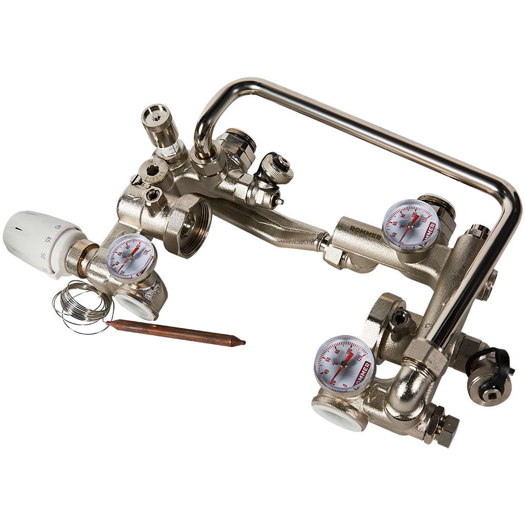 Насосно-смесительный узел с термоголовкой, перепускным клапаном и байпасом, без насоса Rommer купить по привлекательной цене ✔ Насосно-смесительный узел с термоголовкой, перепускным клапаном и байпасом, без насоса Rommer ☛ характеристики, отзывы покупателей, фотографии и сопутствующие товары ☛ Доставка по всей России ★★★ Смесительные узлы - широкий выбор на сайте интернет-магазина «Газ и Тепло»❗