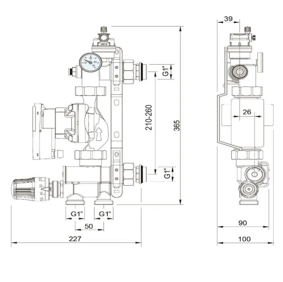 Смесительный узел Wester серии S DN25 20-43°C предназначен для обеспечения циркуляции теплоносителя в низкотемпературных системах отопления. Температура поддерживается с помощью смесительного клапана с настройкой температуры от 20 до 43°C.