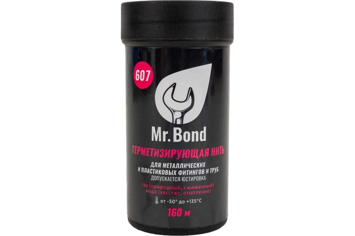 Нить для герметизации резьбы (160м) Mr.Bond 607 купить по привлекательной цене ✔ Нить для герметизации резьбы (160м) Mr.Bond 607 ☛ характеристики, отзывы покупателей, фотографии и сопутствующие товары ☛ Доставка по всей России ★★★ Сантехнические нити - широкий выбор на сайте интернет-магазина «Газ и Тепло»❗