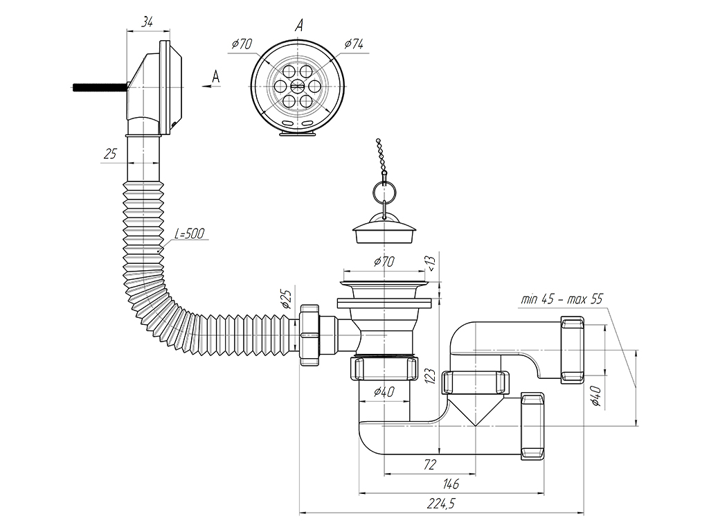 - Выход для подключения к канализации: 40 мм.