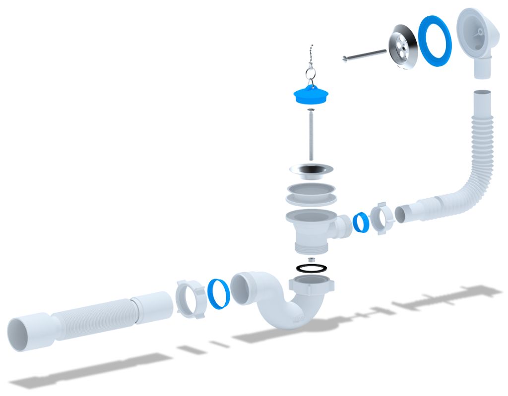 для Ванна, Ду слива 1 1/2", Ду канализации 50мм, Обычный перелив, отводы - нет