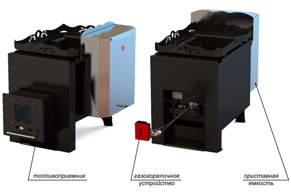 Данный образец – прекрасное и универсальное решение для оснащения парилок, так как его работа обеспечивается от двух альтернативных источников топлива. Печь позволит прогреть воздух в достаточно просторном помещении (объем которого не превышает 27 м³) в короткие сроки. Этот показатель достигается за счет того, что надежная конструкция позволяет сделать теплоотдачу от сжигаемого топлива максимальной, а вес используемого каменного наполнения достигает семидесяти килограммов.