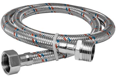 Гибкая подводка для воды 1/2” г/ш 2,5м - гибкий шланг с оплеткой из нержавеющей стали для соединения с системами водоснабжения сантехнического и отопительного оборудования используется для подключения сантехники к системе водоснабжения и может применяться даже в труднодоступных местах и при отсутствии достаточного места для подводки из негибких материалов.