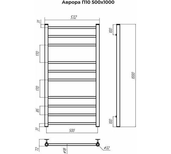 Полотенцесушитель водяной Terminus Аврора П10 500х1000 купить по привлекательной цене ✔ Полотенцесушитель водяной Terminus Аврора П10 500х1000 ☛ характеристики, отзывы покупателей, фотографии и сопутствующие товары ☛ Доставка по всей России ★★★ Полотенцесушители TERMINUS лесенка - широкий выбор на сайте интернет-магазина «Газ и Тепло»❗
