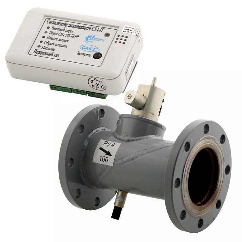 Система САКЗ-МК-1 DN 65 состоит из сигнализатора СЗ-1 (природный газ)/ СЗ-3 (сжиженный газ), клапана КЗЭУГ или КЗГЭМ-У (DN = 15?150, PN — до 0,4 МПа), соединительного кабеля с разъемами длиной 10 метров (по заказу возможна иная длина).