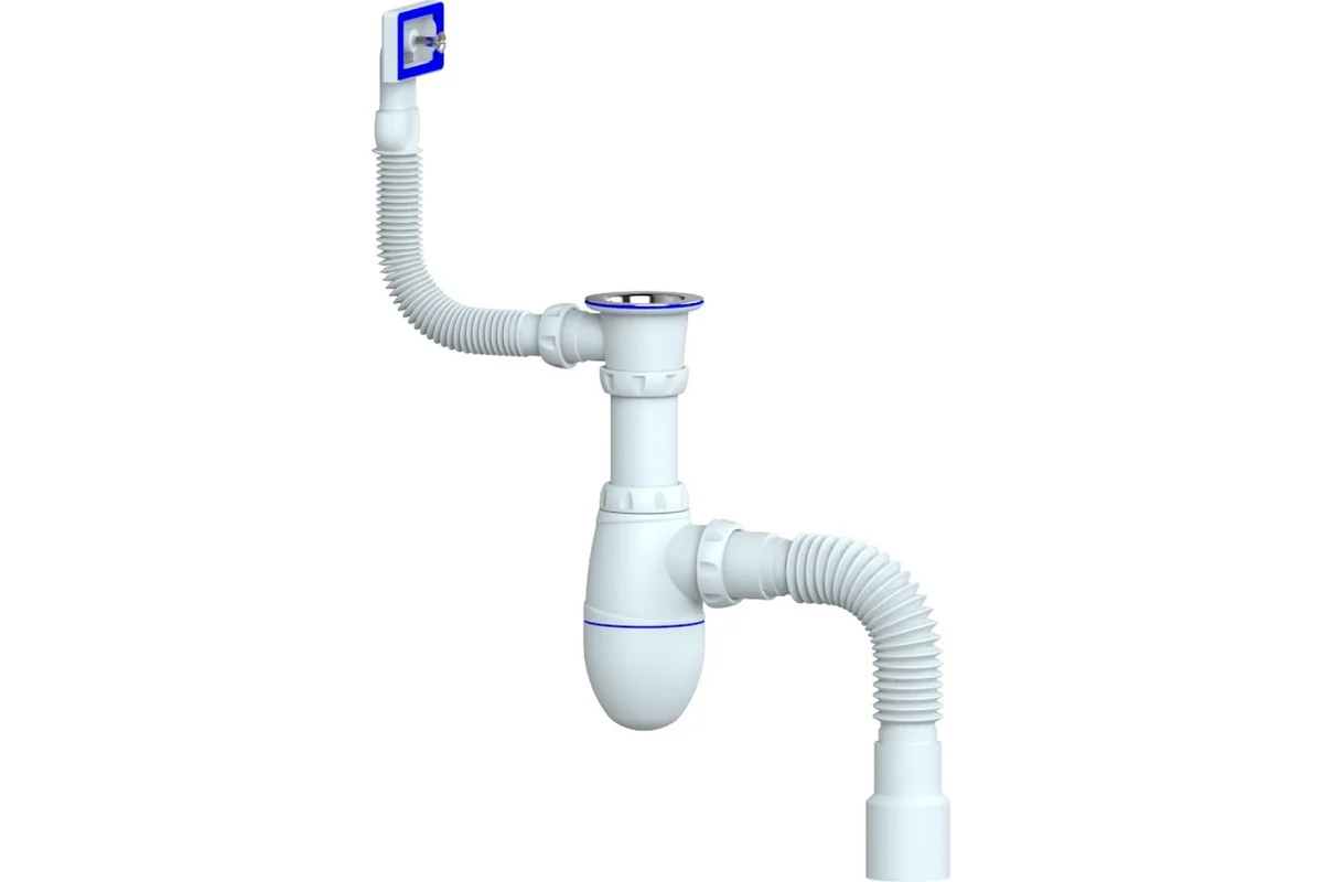 для Маленькая Мойка, Ду слива 1 1/2", Ду канализации 40/50мм, Гибкий перелив, отводы - нет