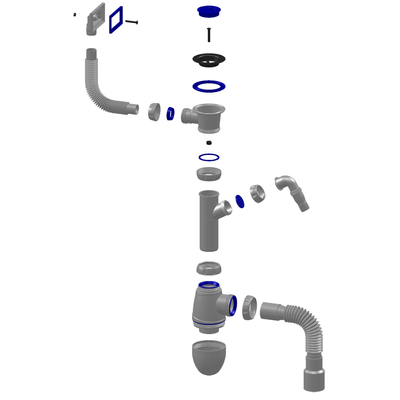 для Маленькая Мойка, Ду слива 1 1/2", Ду канализации 40/50мм, Гибкий перелив, отводы - для стиральной машины