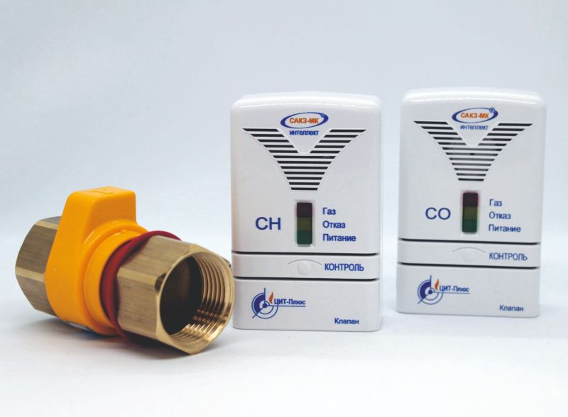 Система автоматического контроля загазованности САКЗ-МК-2-1А DN25 контролирует содержание природного газа (CH4) и угарного газа (CO) в помещении. При превышении порогового значения содержания газа сигнализирует звуковым, световым сигналом и выдает сигнал закрыть клапан на трубе подачи газа.