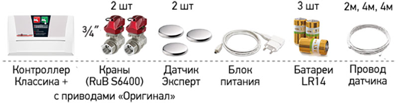 Система защиты от протечек воды Аквасторож Классика+ с кранами 3/4” Набор 22.64