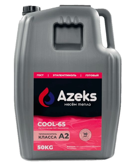 AZEKS COOL-65 теплоноситель класса А2 с увеличенным сроком эксплуатации за счёт применения технологии OAT Organic Acid Tehnology. Одобренная специалистами формула гарантирует, что Ваша система отопления и комфорт будет в надёжной защите.