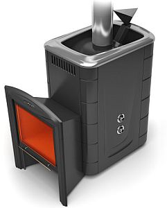Модификация с закрытой каменкой, экраном Витра 42 см, теплообменником, цвет антрацит, отапливает до 18м³ топливом: Дрова, дымоход Ø 115мм, Большой светопрозрачный экран, корпус Жаростойкая сталь, каменка - Закрытый 42л на 70кг камней, габариты 510х900х840мм