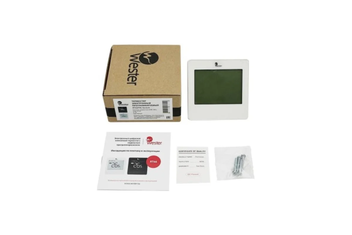 Термостат электронный программируемый Wester RT66PW белый купить по привлекательной цене ✔ Термостат электронный программируемый Wester RT66PW белый ☛ характеристики, отзывы покупателей, фотографии и сопутствующие товары ☛ Доставка по всей России ★★★ Термостаты и модули WESTER - широкий выбор на сайте интернет-магазина «Газ и Тепло»❗
