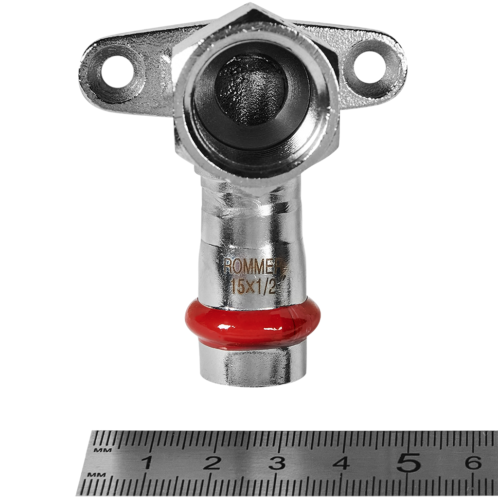 Угольник настенный с креплением прессовой из нержавеющей стали 15х1/2” ВР Rommer