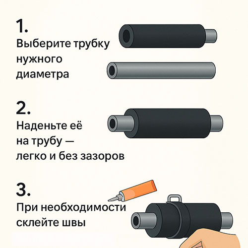 Изоляция легко надевается на трубы, плотно прилегает без зазоров
